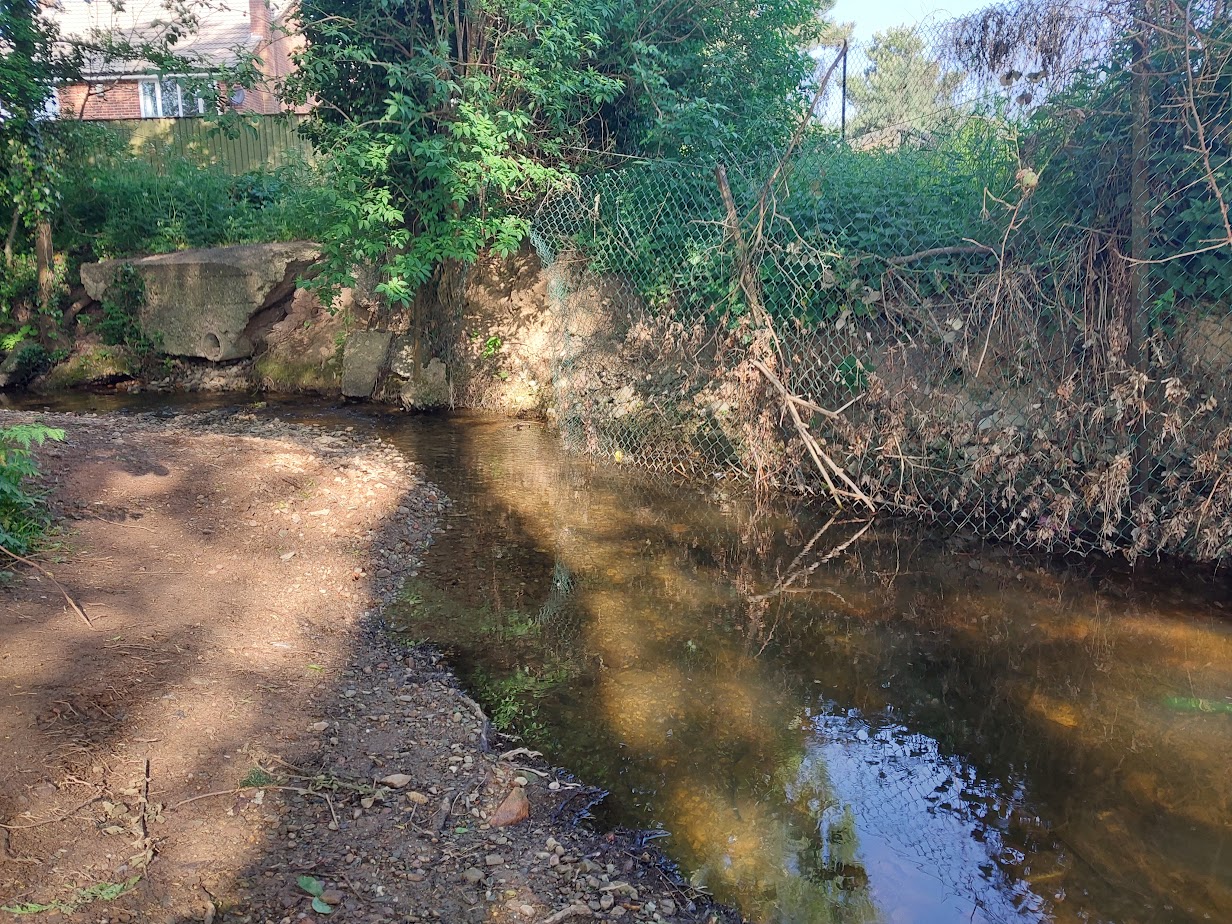 The steep, densely vegetated banks initially prevented viewing much of the watercourse so the best method to conduct the inspection was to wade along the channel. Thankfully the water levels were quite low as there hadn’t been much rain prior to the inspection.