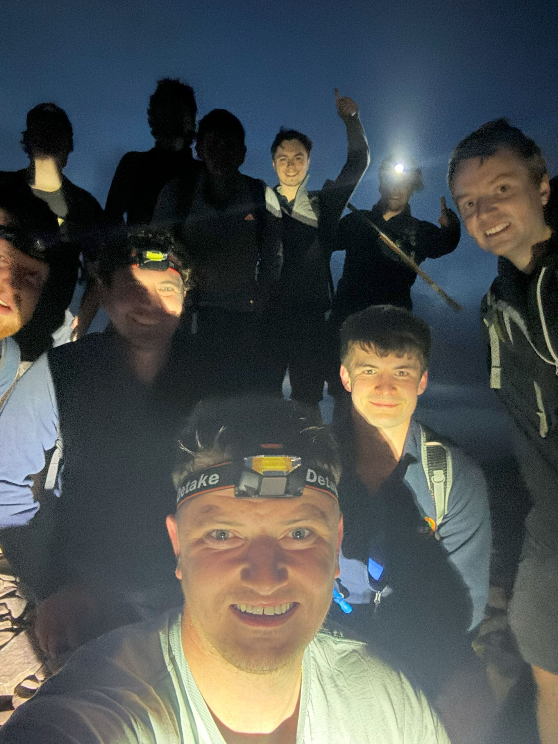 Onto the next and final climb, Pen y Fan, luckily a much easier ascent. Head torches required again to reach the summit, and for some of us with now ruined knees, a very slow descent. This did allow the mountain goat that is Tom to have a nap back at the cars whilst he waited for us! Everyone was back down at the cars for 11pm.